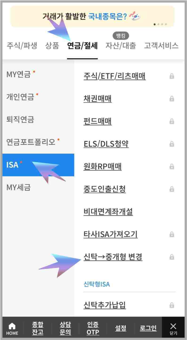 현재 삼성증권을 비롯한 일부 증권사에서는 앱을 통해 신탁형에서 중개형으로 전환할 수 있는 기능을 제공하고 있습니다. 고객센터에 문의하거나 증권사 앱에서 '신탁형 → 중개형 변경' 메뉴를 찾아보세요.