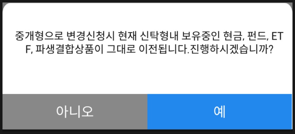 변경이 가능한 경우, 앱이나 지점을 방문하여 변경 신청을 하면 됩니다. 만약 변경 메뉴가 없다면, 기존처럼 ETF를 매도한 후 새롭게 중개형 계좌를 개설해야 합니다.