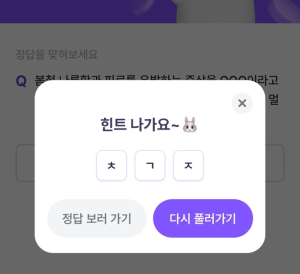 비트버니 퀴즈 3월 10일 정답은 ' 춘곤증 '입니다!