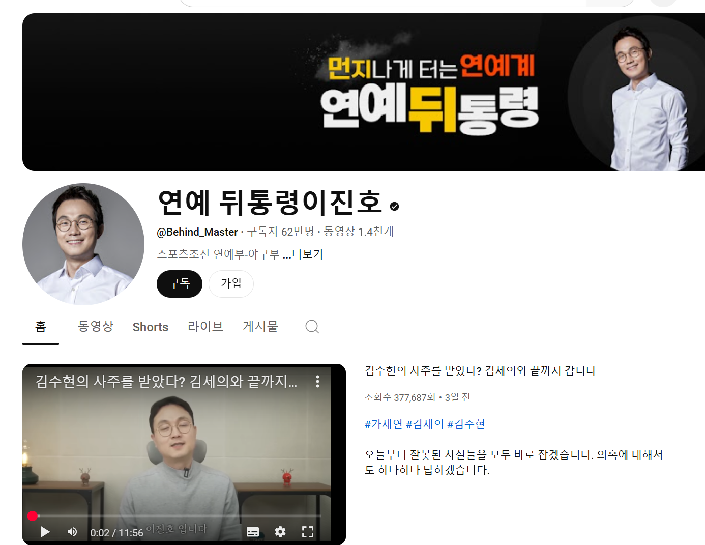 이번 김새론 유가족 고소 건도 그의 콘텐츠와 연관된 논란 중 하나다.