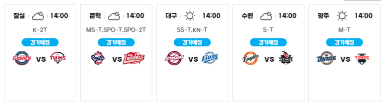 | 3월 22일(토) | 오후 2시 | 대구 | 키움 vs 삼성 | KBS N SPORT, SBS SPORT |